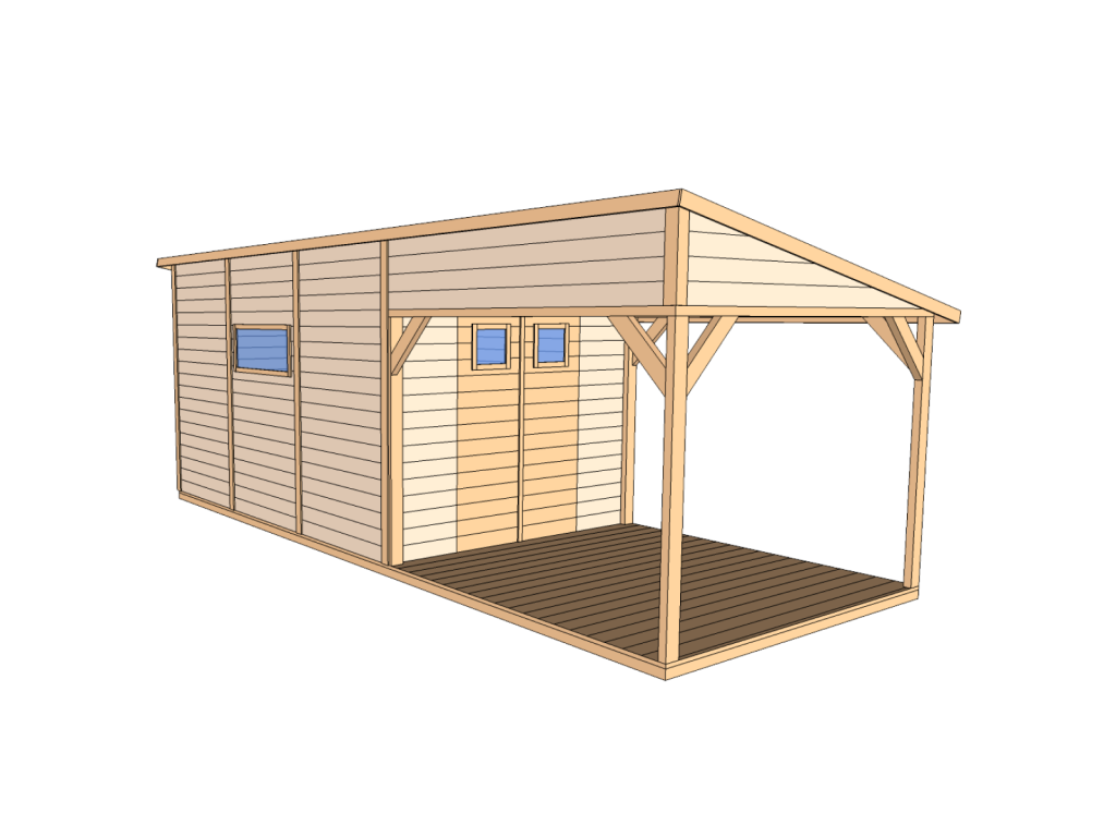 Drevený domček GLADIOLA s terasou (2,7 × 6,45 m)