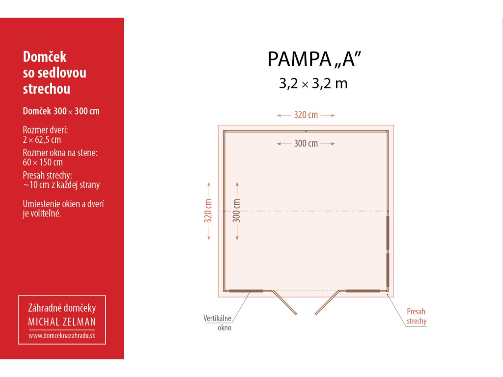 Drevený domček PAMPA so sedlovou strechou (3,2 × 3,2 m)