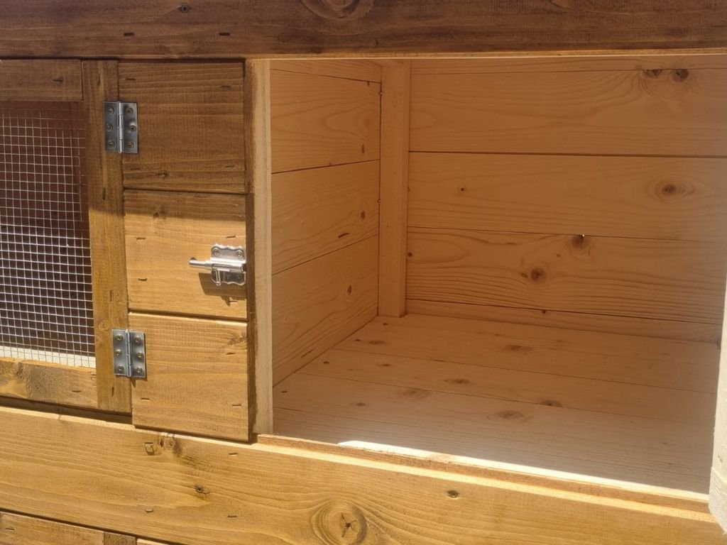 - Pevná a trvácna konštrukcia: Tento zajačinec je vyrobený z kvalitného smrekového dreva, aby spoľahlivo slúžil vám aj vašim zvieratám po mnoho rokov.